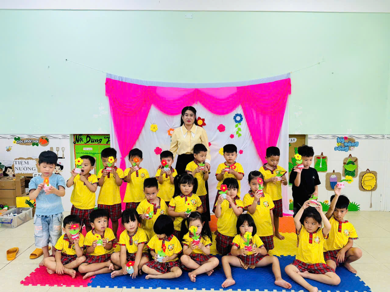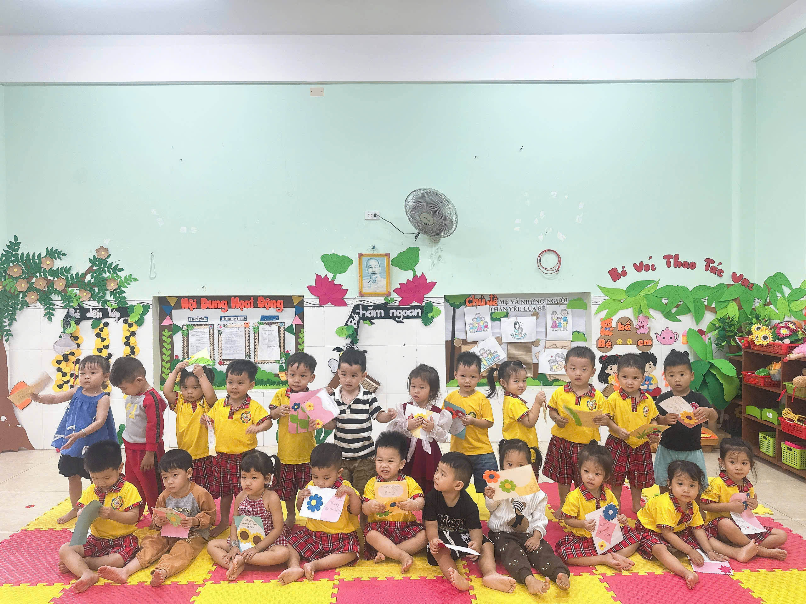 🎄 🎄 🎄 Thông qua các hoạt động trải nghiệm như cắm hoa, làm thiệp, trang trí khung ảnh, nhảy nhịp điệu và biểu diễn thời trang, các bé không chỉ được rèn luyện sự khéo léo, sáng tạo mà còn được giáo dục những giá trị tốt đẹp về tình yêu thương, lòng biết ơn và sự kính trọng đối với bà, mẹ và cô giáo🍁 🍁