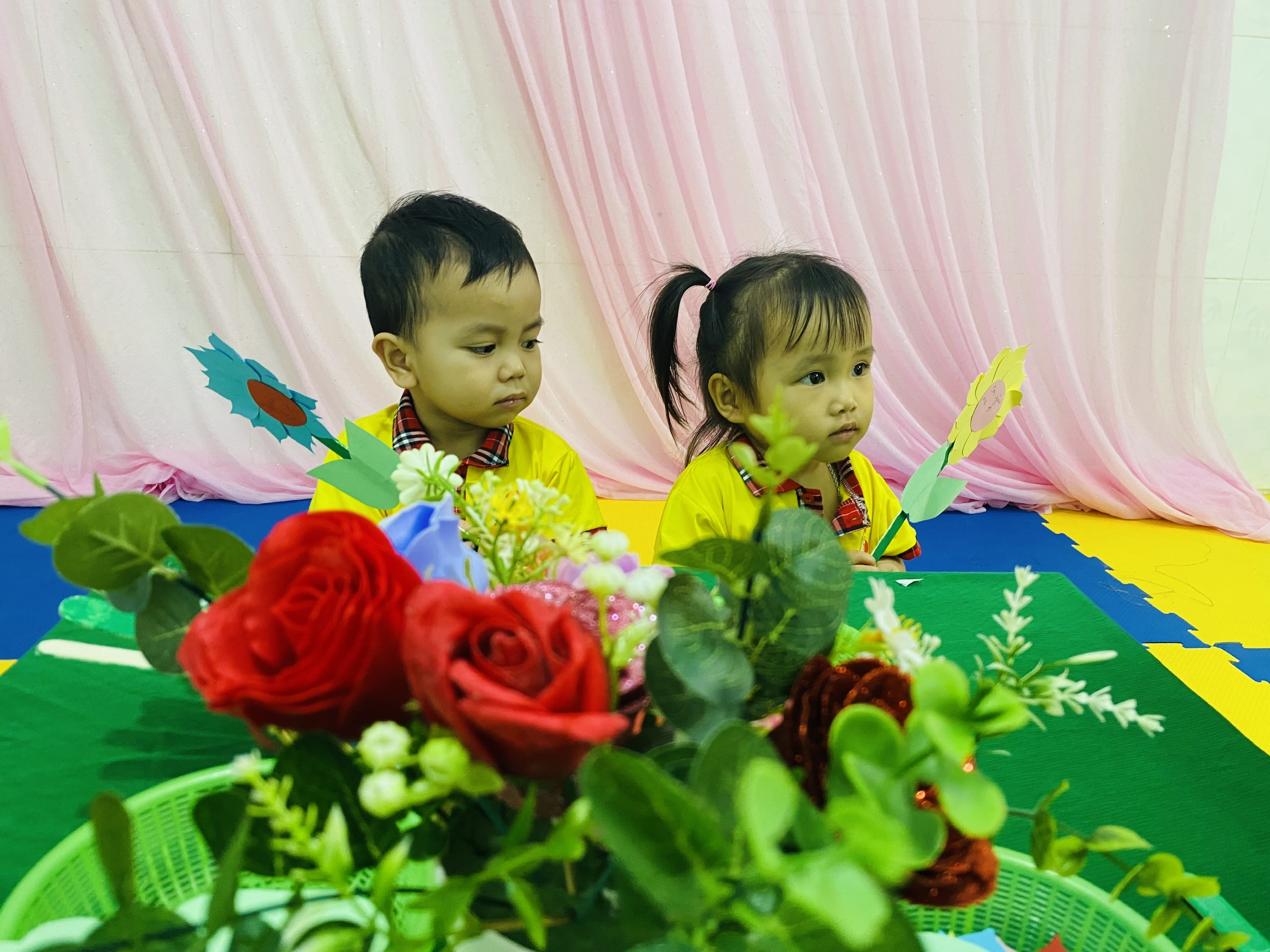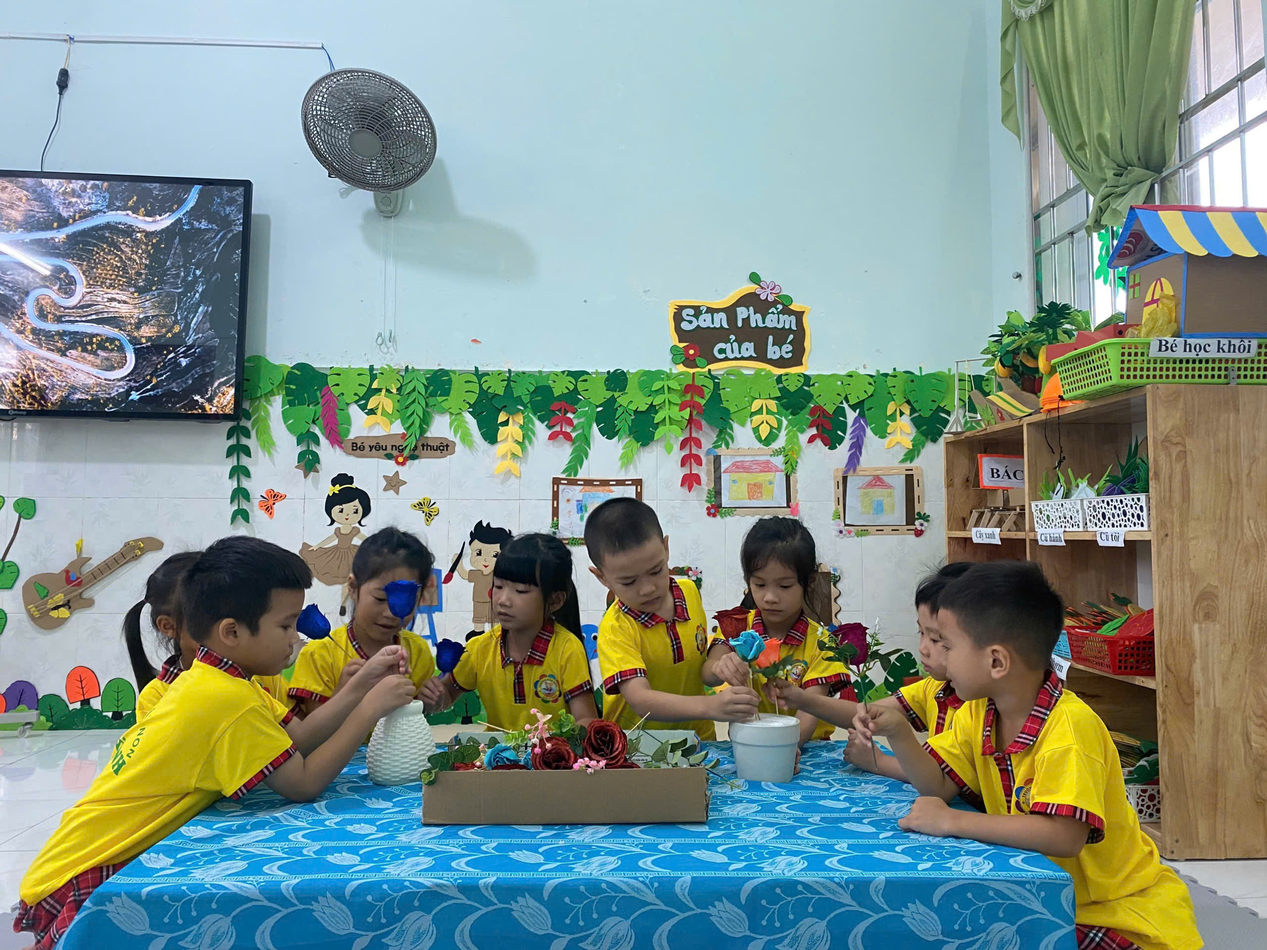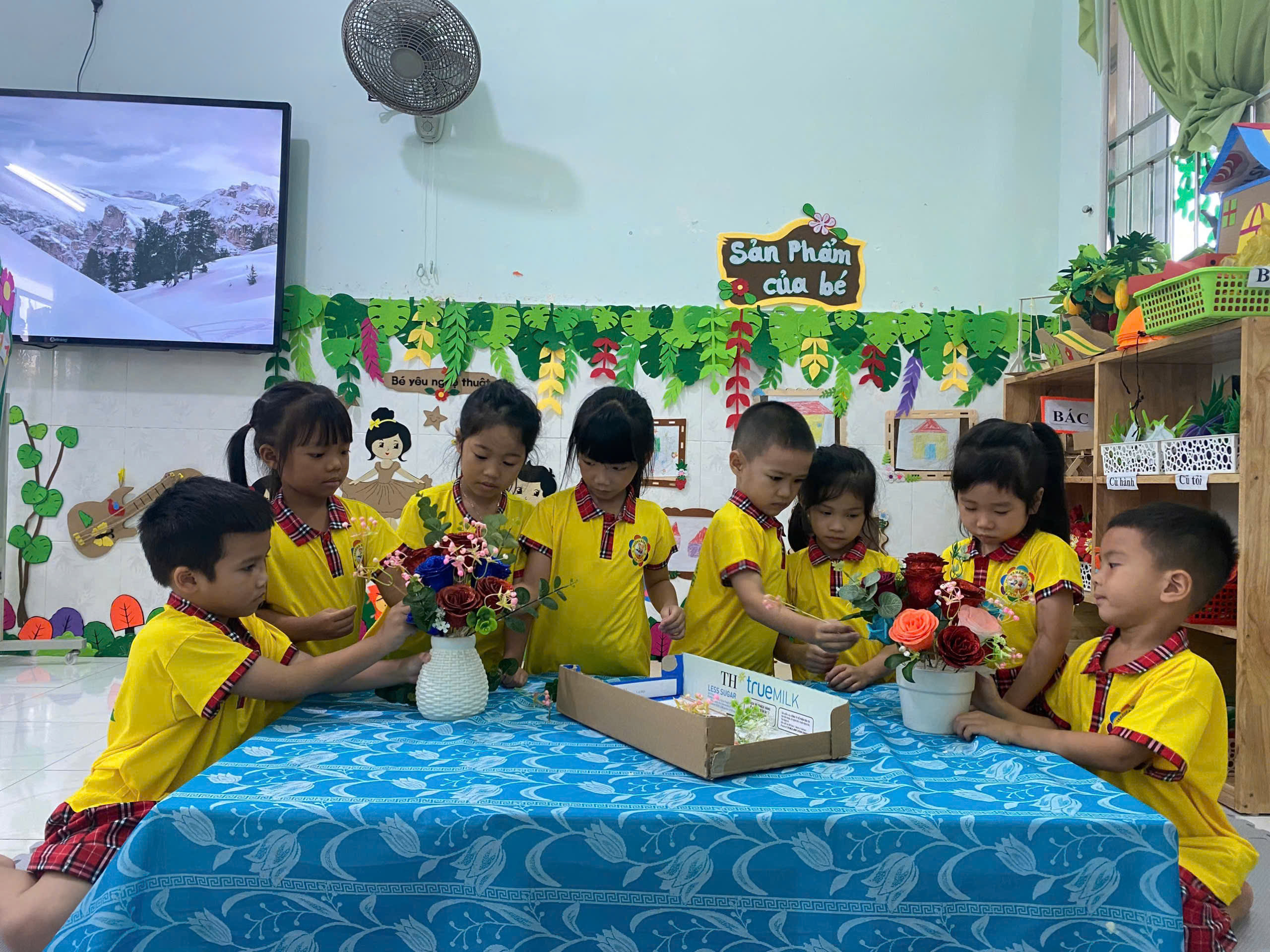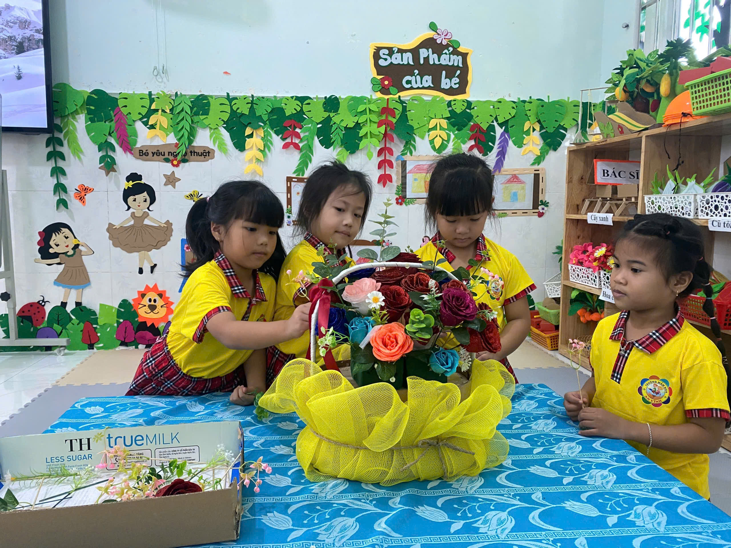 💐 💐 💐 Một trong những hoạt động được các bé rất yêu thích là hoạt động cắm hoa. Dưới sự hướng dẫn tận tình của cô giáo, các bé đã khéo léo lựa chọn những bông hoa tươi đẹp để sắp xếp thành những lẵng hoa xinh xắn. Dù còn nhỏ nhưng các bé đã rất tỉ mỉ và hào hứng khi tự tay hoàn thành sản phẩm của mình. Những giỏ hoa nhỏ nhắn nhưng chứa đựng tình cảm ngọt ngào của các bé dành tặng bà và mẹ nhân ngày đặc biệt này 🍄 🍄