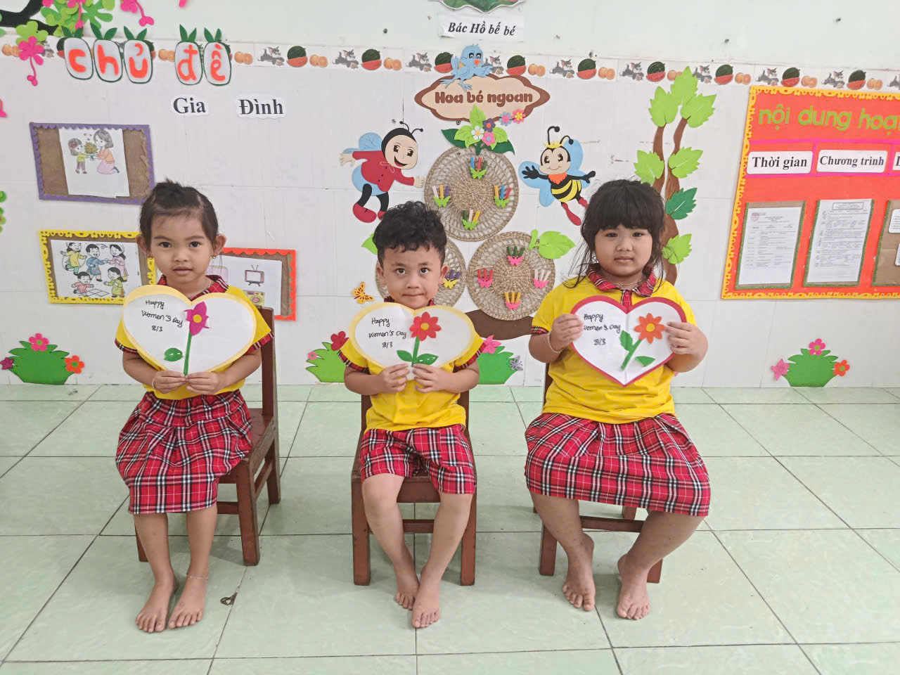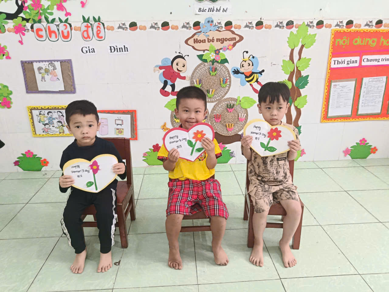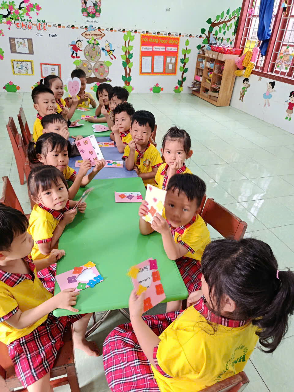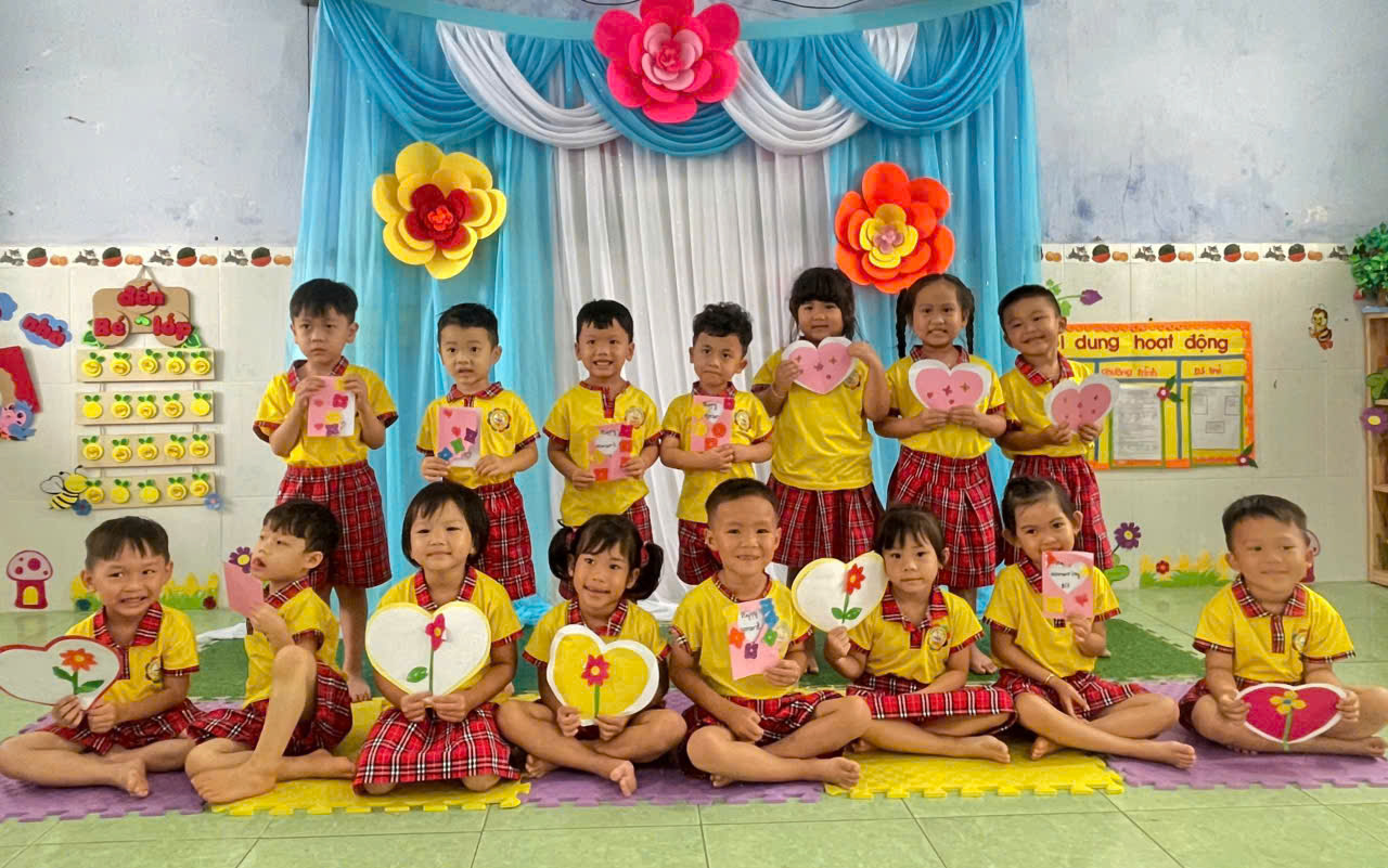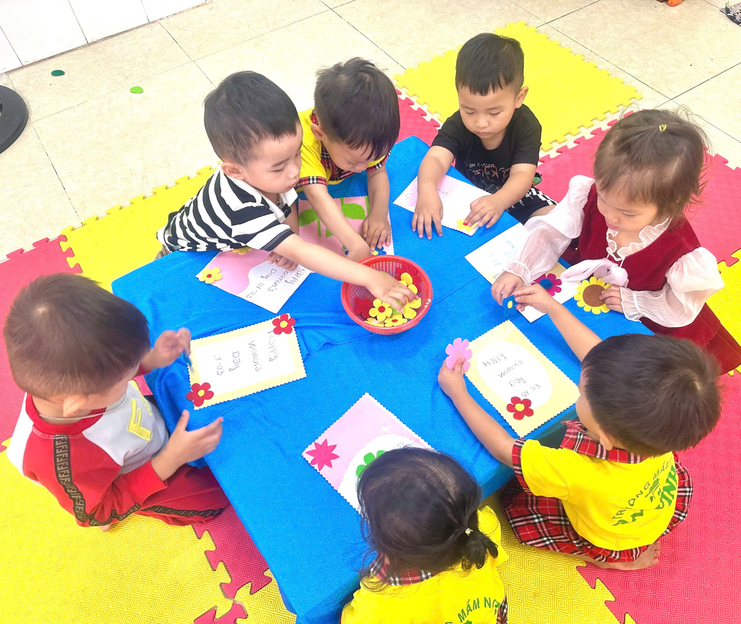Bên cạnh đó, các bé còn tham gia hoạt động làm thiệp chúc mừng 8/3. Từ những tờ giấy màu, hình dán và những nét vẽ ngộ nghĩnh, các bé đã sáng tạo nên những tấm thiệp xinh xắn với những lời chúc giản dị nhưng đầy yêu thương như: “Con yêu mẹ”, “Chúc mẹ luôn vui”, “Con tặng cô”… Những tấm thiệp nhỏ bé ấy chính là món quà tinh thần vô cùng ý nghĩa mà các bé muốn gửi gắm đến những người phụ nữ thân yêu 🌹 🌹