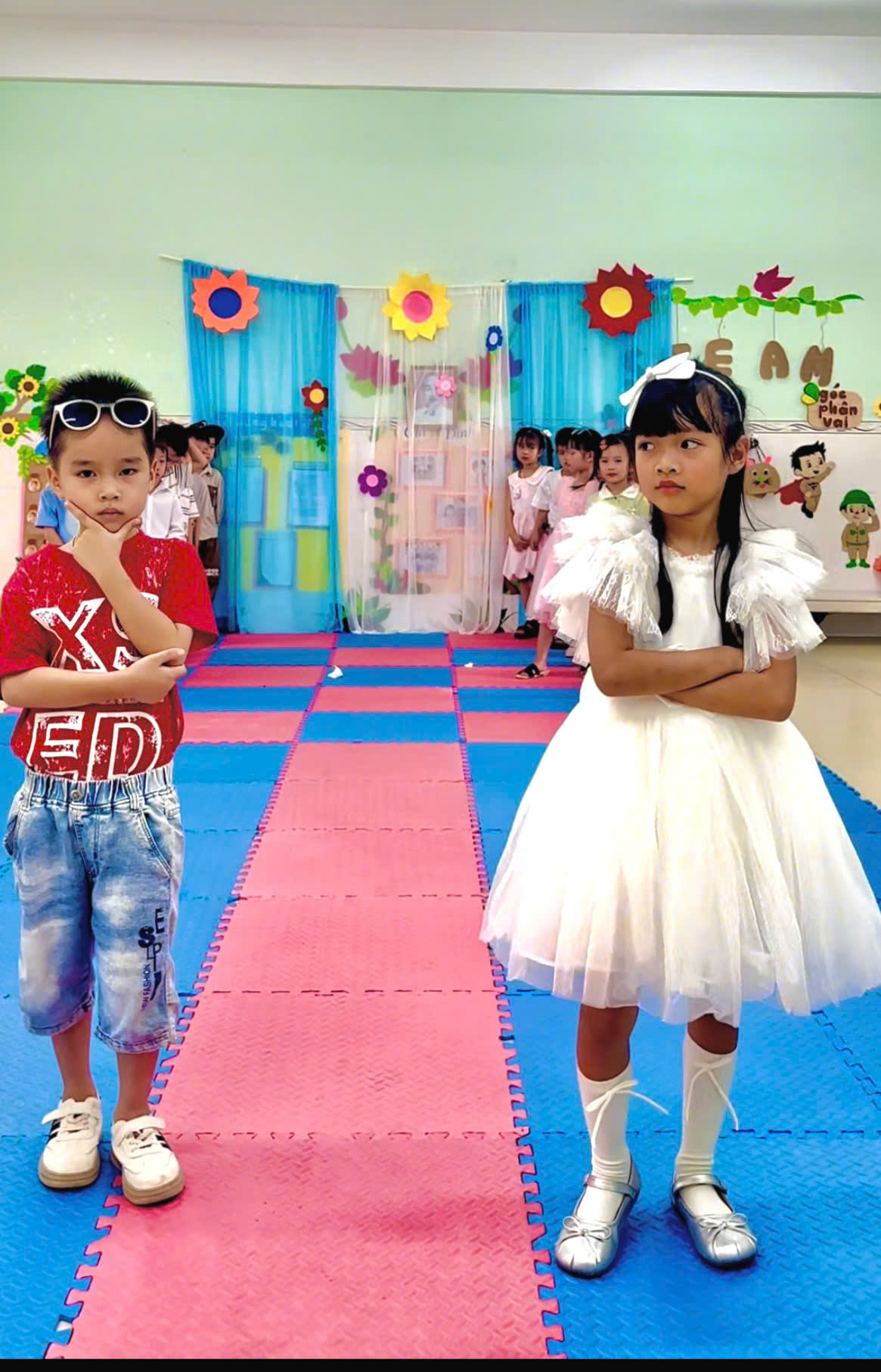🎼 🎼 Không khí ngày hội càng trở nên sôi động với hoạt động nhảy nhịp điệu và biểu diễn thời trang. Trong những giai điệu vui tươi, các bé đã tự tin thể hiện những điệu nhảy đáng yêu, ngộ nghĩnh. Đặc biệt, phần biểu diễn thời trang với những trang phục nhiều màu sắc đã mang đến không khí vui tươi và hào hứng. Các bé bước đi tự tin trên “sân khấu nhỏ” của trường, nhận được những tràng pháo tay cổ vũ nhiệt tình từ cô giáo và các bạn. 👭 👭